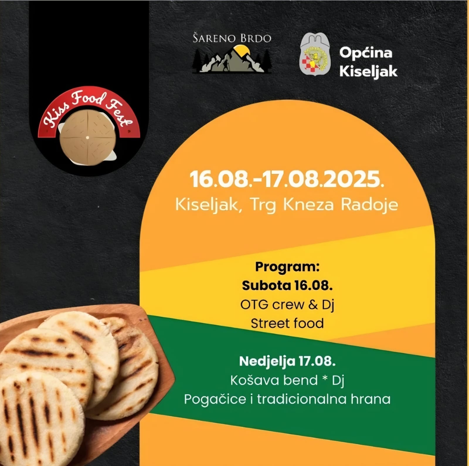 Program počinje u subotu, 16. kolovoza, nastupom OTG crew-a i DJ-a, a ljubitelji dobre hrane moći će uživati u bogatoj ponudi street food specijaliteta.