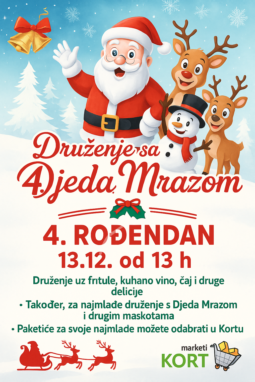 Hiper Kort Market Kiseljak ove subote, 13. prosinca, slavi svoj 4. rođendan, a tom prigodom sve kupce i posjetitelje očekuje pravo blagdansko druženje ispunjeno odličnom atmosferom i bogatom ponudom delicija.