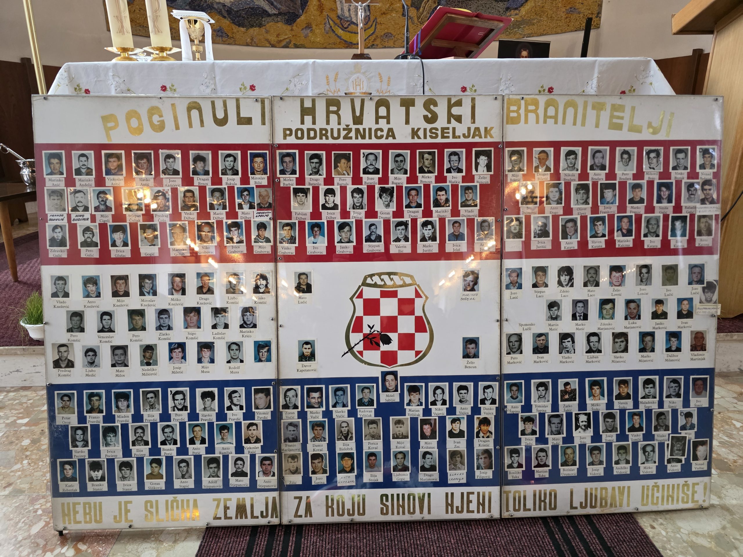 Ispred oltara bile su izložene fotografije poginulih hrvatskih branitelja, što je cijelom misnom slavlju dalo posebno snažnu i emotivnu simboliku. Njihova lica, postavljena pred oltar, podsjećala su okupljene na osobnu žrtvu svakog od njih te na trajnu obvezu da njihova imena i žrtva nikada ne budu zaboravljeni.